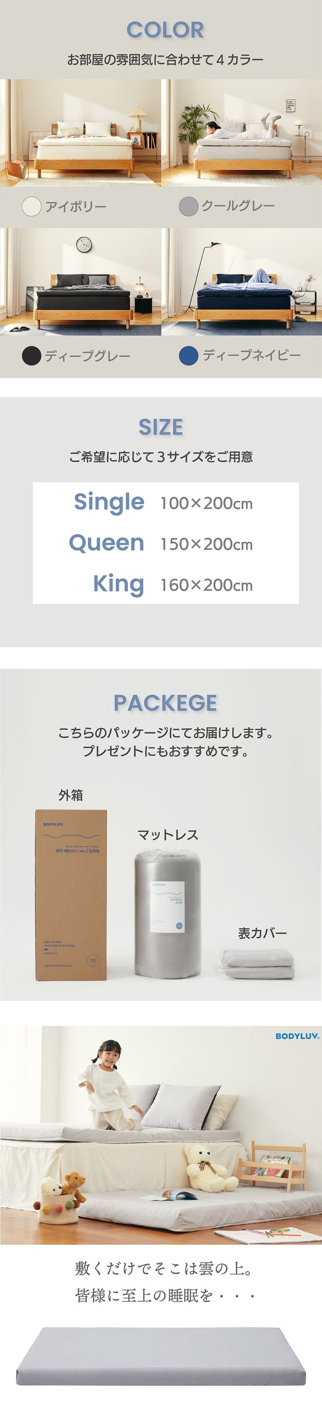 サイズ:シングル100×200cm/クイーン150×200cm/キング160×200cm
