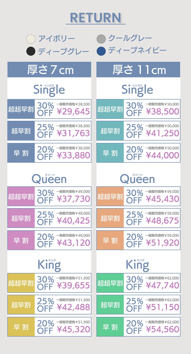【超早割】先着80名様『25% OFF』キング:11cm厚マットレス×1枚