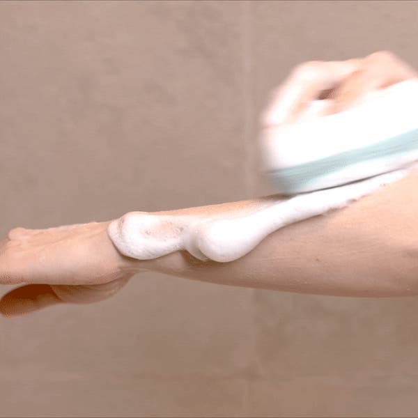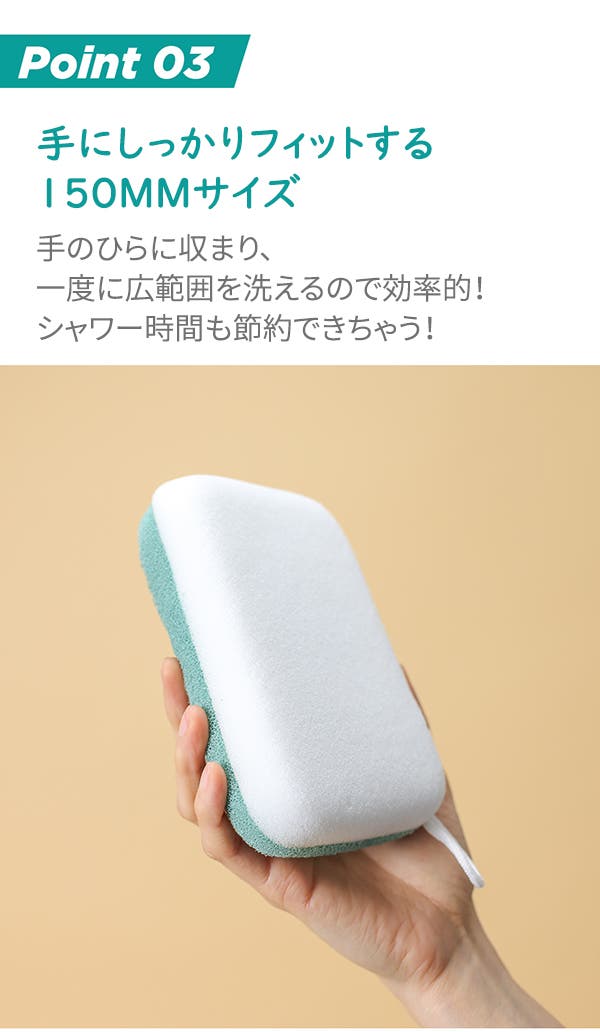 手のひらに収まり、一度に広範囲を洗えるので効率的! シャワー時間も節約できちゃう♪