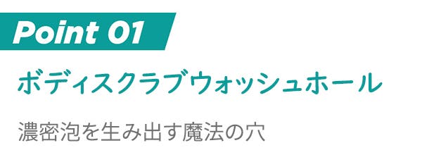 ボディソープを中央のホール(凹部分)にプッシュするだけで、流れ落ちることなく豊かな泡を作ることができます。