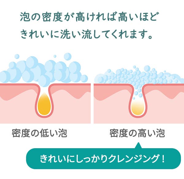 薄く粒子が固まった泡は密着力に劣り、すぐに消えてきれいに洗浄することができません。