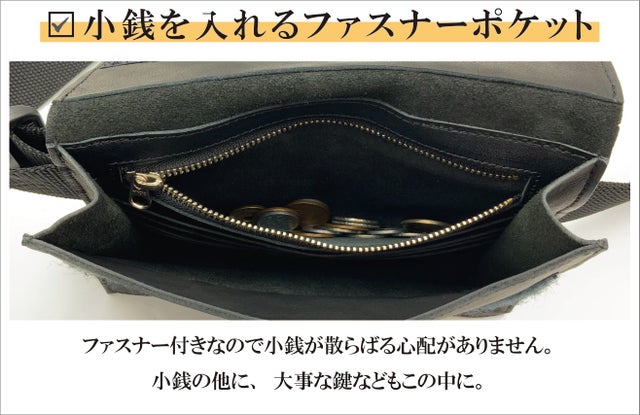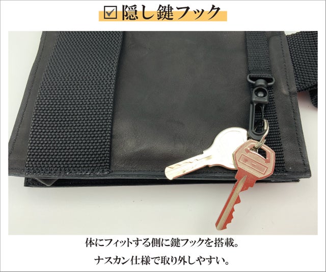 コンパクトでありながらもお財布機能を搭載したボディウォレットは今までの財布を探す手間、財布を取り出す手間、財布を開く手間が省けます。