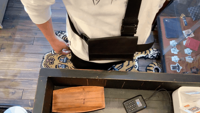 バッグの中をゴソゴソしなくても、ボディウォレットを開けるだけですぐにお金やカードにアクセスでき、お会計でもたつくことも減り、スムーズなお会計が出来ます。