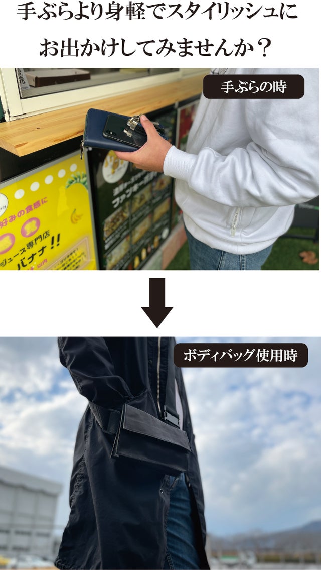 スマホ1つで多くのことを完結できるようになった現代人の荷物の少なさにマッチしたボディウォレット。