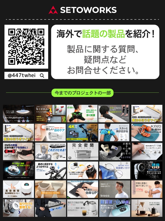 setoworksは日本の新しい製品を外国にいち早く紹介する事業を始め、海外の新しい商品や直接企画した多様なプロダクト製品を日本国内に紹介する事業を展開しています。