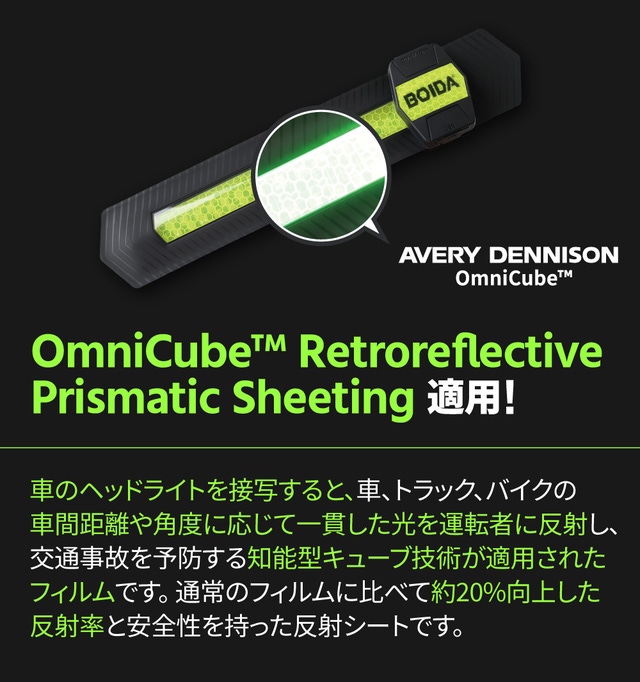 BOIDAはLEDとリフレクトシートを組み合わせた設計で、より明るい光をお届けします。