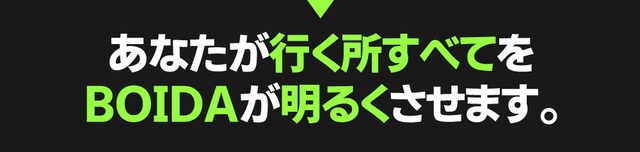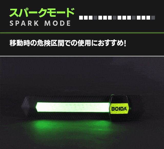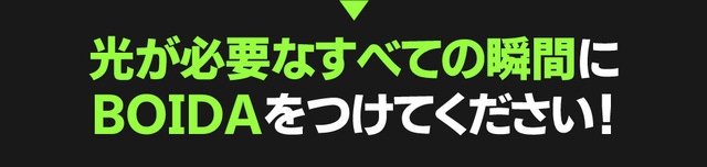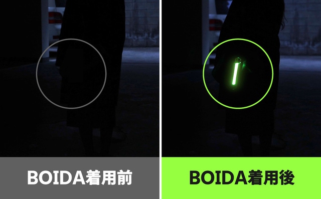 BOIDAは暗闇の中でも存在をしっかりアピールでき、圧倒的な視認性を誇ります。