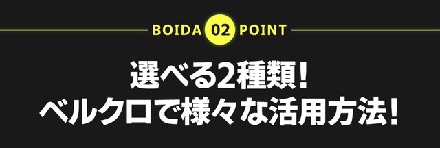 BOIDAはベルクロのストラップ、ベルト、リングなどを利用して様々なシーンで活用できます。