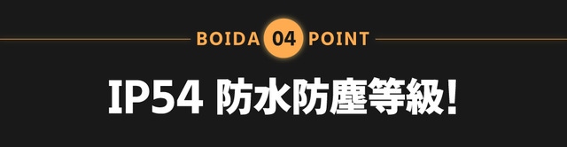 アウトドアに最適化された生活防水IP54等級の製品で、雪の日や小雨の日にも使用できます。