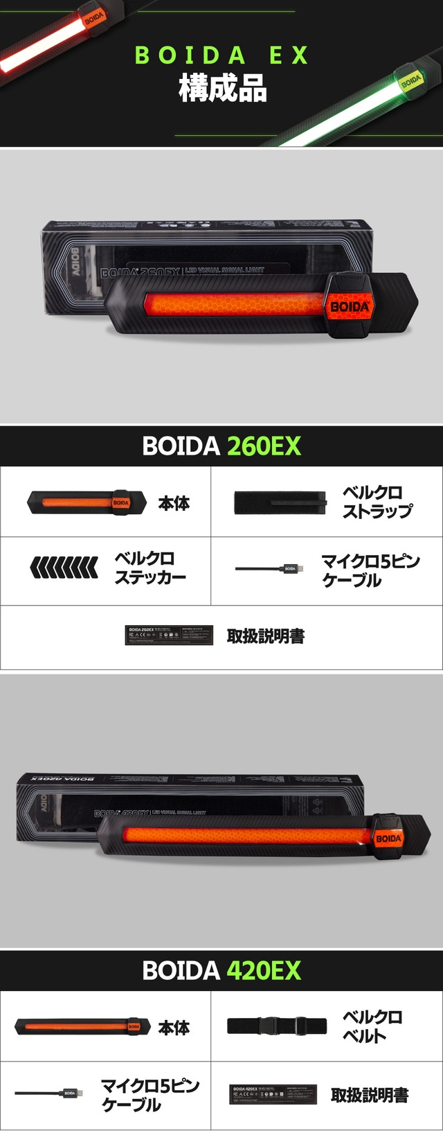 BOIDAは長さが違う2種類(260EX, 420EX)から選べます。必要なサイズを選んでご自由にお使いください!