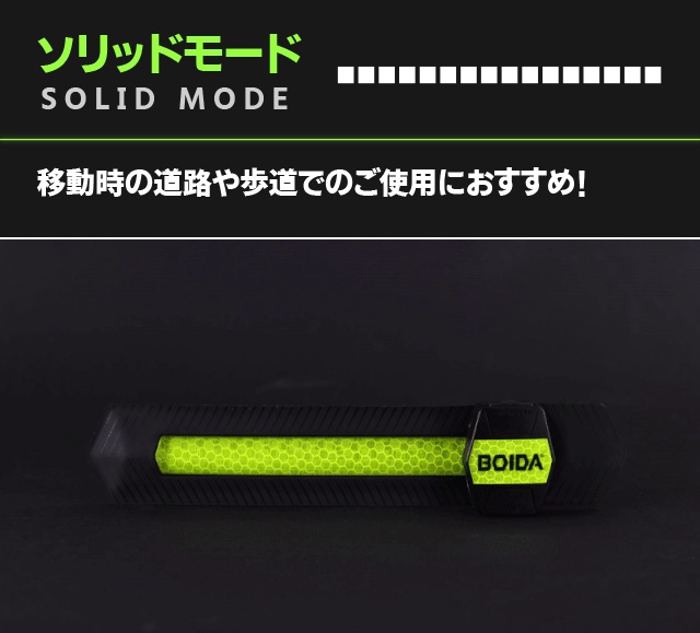 BOIDAは3種類のライトモードで状況に合わせて便利に使用できます。