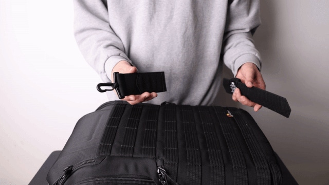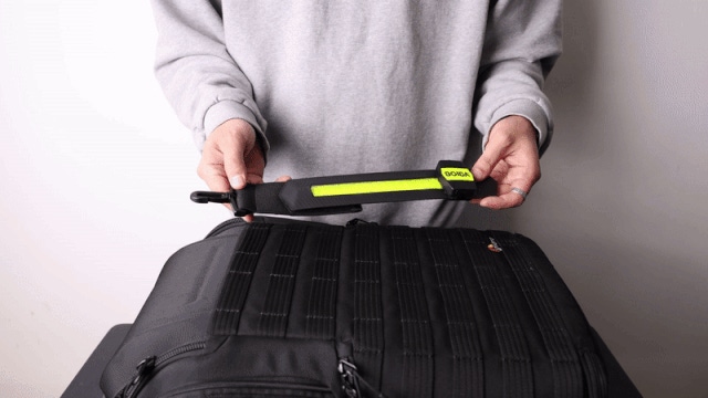 *ベルクロリング2つをバックパックの両側に連結し、BOIDAを横方向にかけることもできます。