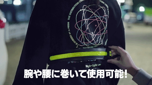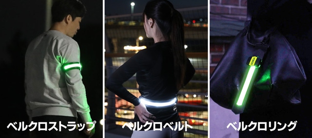 - しなやかに曲がる素材で腕や腰、ヘルメット、バッグなどどこにでも付着や着用可能!