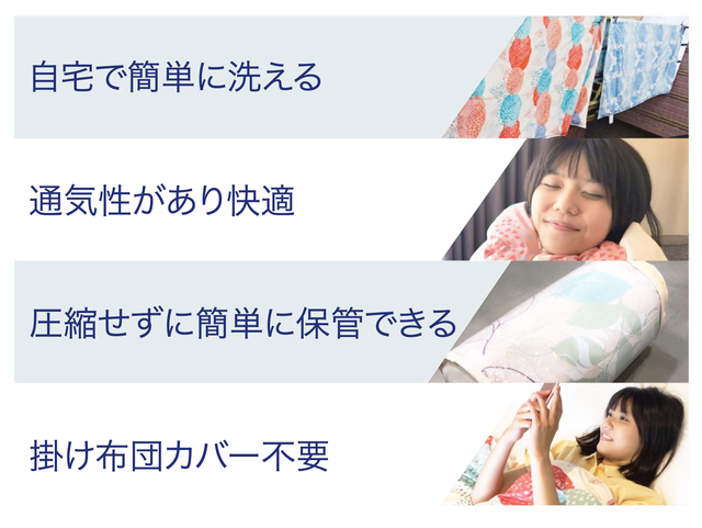 「EASY LIFE 十月被」は様々なメリットをカバーしています。1年を通して真冬を除く約10ヶ月間、季節を問わず使用できます。