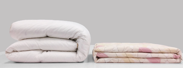 市場にはたくさんの種類の布団があります。