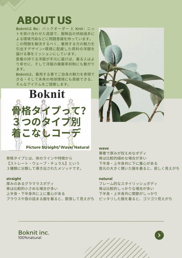 - 骨格タイプ毎に似合う拘りのデザイン/フィットする着こなしもご提案