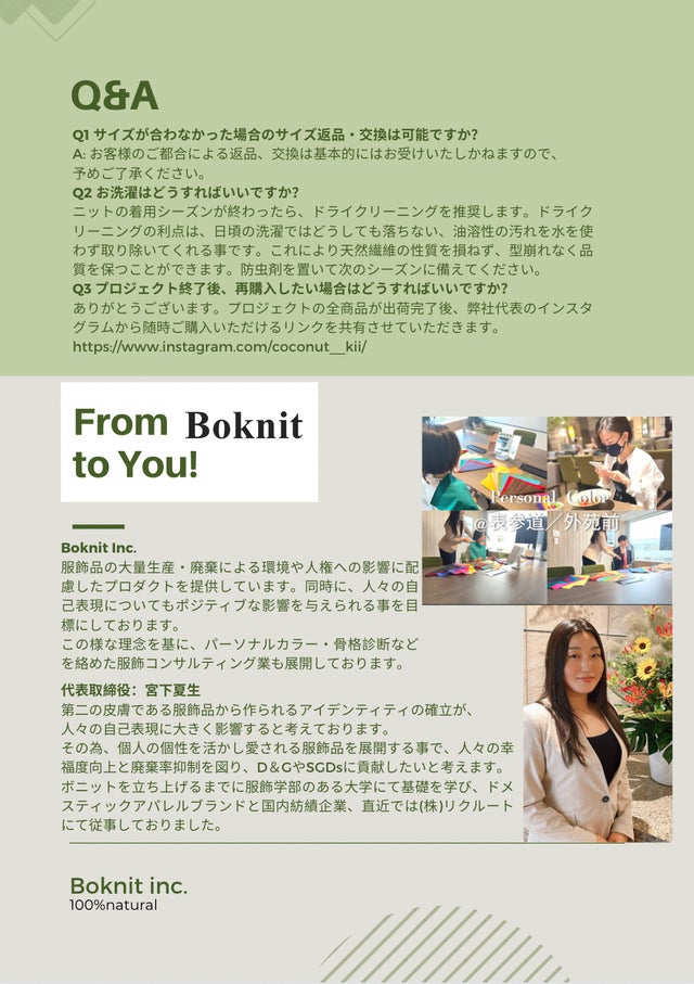 ボニットでは、お客様により良いサービスをご提供する為、下記のセールスポリシーにてご対応させて頂いております。ご理解賜りますようお願い申し上げます。 ・ご注文状況、使用原料の供給状況、製造工程上の都合等により出荷時期が遅れる場合がございます。 ・リターン品各種は組み合わせや色を自由にお選びできるようにしておりますが、想定を超えた応援をいただき、色の偏りなどが原料供給状況等の限度を超えた場合、リターン品のラインナップから在庫切れカラーを外すなどの対応を行う場合がございます。予めご了承くださいませ。 ・原則として配送遅延に伴う応援購入のキャンセルはできませんが、リターン配送予定月から1ヶ月を超えた場合には、希望者に限りキャンセルにて対応させていただきます。