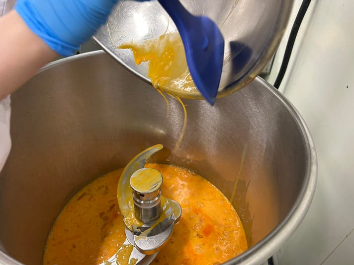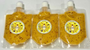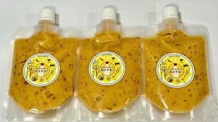 さらに私たちがこだわったのは、「スパイスの魅力を引き出すため、原材料の配合を工夫し、自然なとろみを実現しました」最初はなかなか固まらず、分離してしまったり、舌触りが滑らかにならなかったりと、苦労の連続でした。特に、スパイスを加えることで水分バランスやpHが変わるため、マヨネーズとして安定させるには、素材の選定と配合の見直しが必須でした。