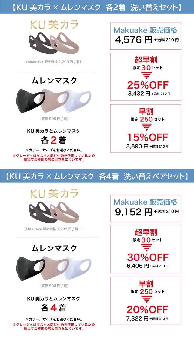 Makuake販売価格】KU美カラ×ムレンマスク各4着洗い替えセットのペアセット