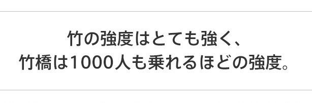 竹は建築物にも用いられるほど強度が高く、竹でできた橋は1,000人の人間が乗ることが出来るほどです。
