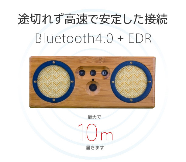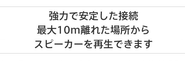 特殊技術により電波が強く、最大10m離れた場所からでも、スピーカーとの安定した通信接続が可能。