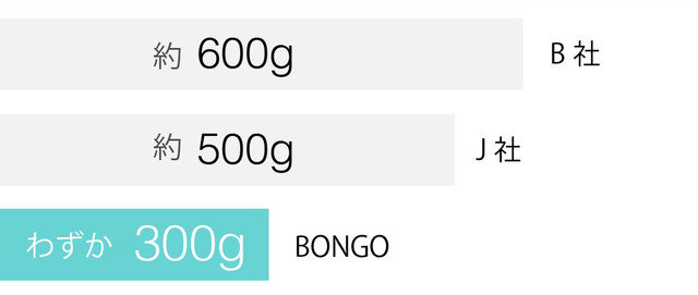一般的な同サイズスピーカーの重量は500~600gに対し、(B社・J社・A社製品の実際の重量を参考)
