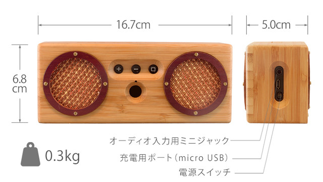 一般的なスピーカーで使われている、プラスティックや科学素材と比較にならない程、高強度・高耐久性素材で、竹製品は末永く使うことができます。