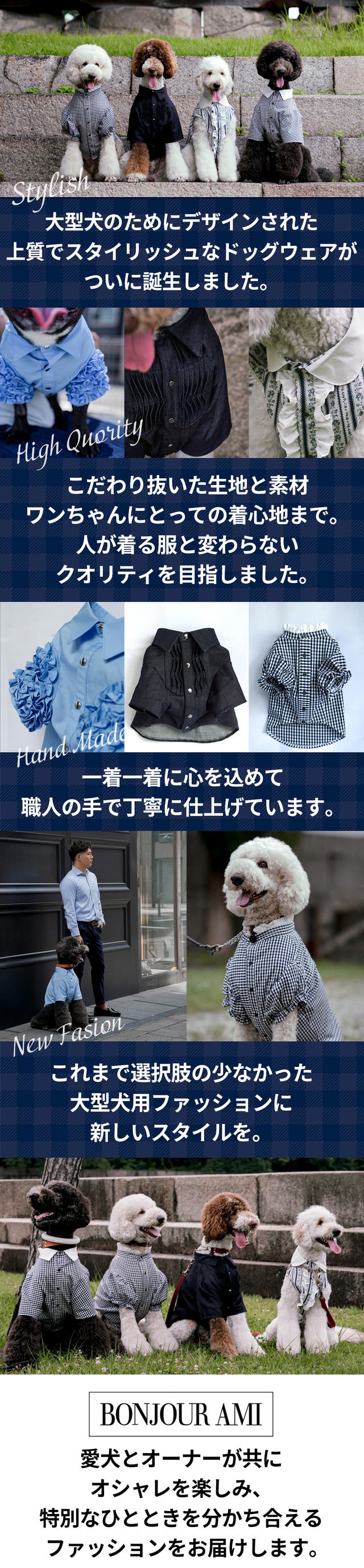 中型犬や小型犬のオーナー様もボンジュールアミのファッションを楽しんでいただけば嬉しく思います。