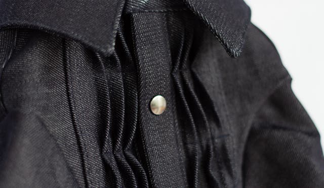 着脱が簡単なスナップボタン仕様で、薄手で軽量な10オンスのデニム生地を使用し、伸縮性も備えています。