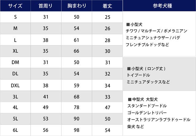 ・上記のサイズは、洋服の仕上がり寸法となります。ワンちゃんの体型、個体差、毛量によってもサイズ感が少し異なります。