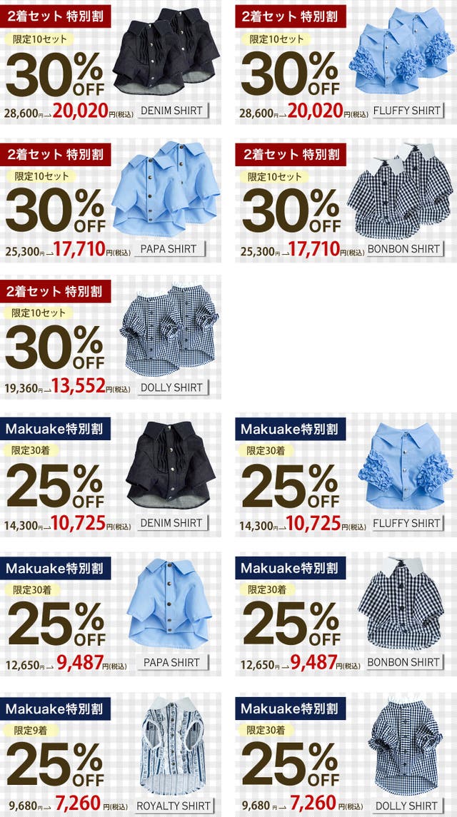 【2着セット特別割 30%OFF】BONBON SHIRT×2着 限定10セット