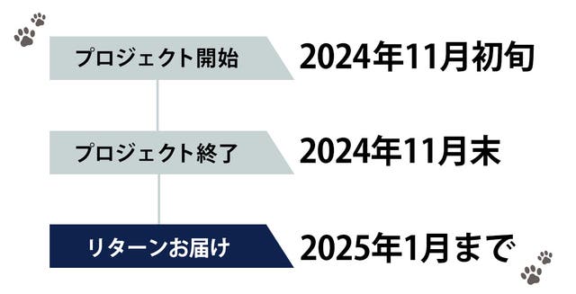 このプロジェクトはAll in型です。目標金額の達成に関わらず、プロジェクト終了日の2024年11月29日までに支払いを完了した時点で購入が成立します。
