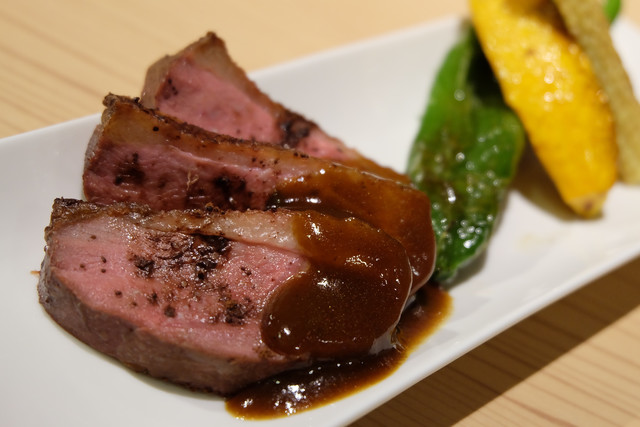 牛以外にも、肉の旨みたっぷりな「鴨胸肉のカカオロースト」や、