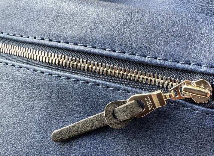 ②引き手…ファスナー開閉のパーツ、使いやすい革パーツ付き