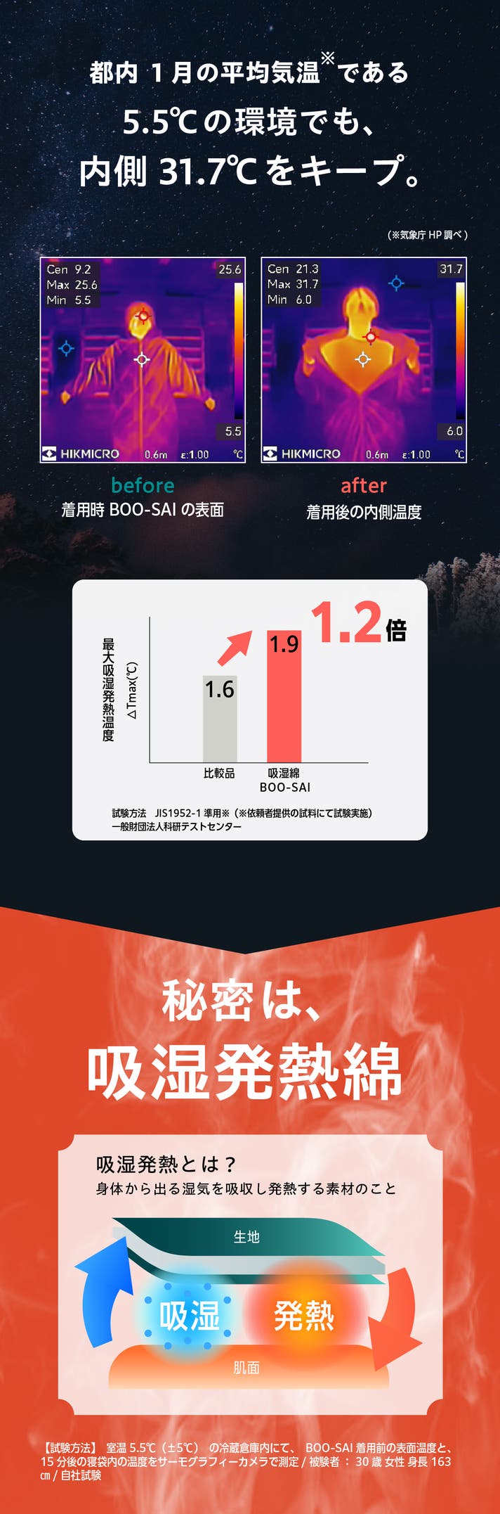 -20度の冷気に当たっても内側暖か。冷気から心地よく身体を守ってくれます。