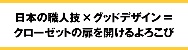 そこで、私たちがこれまで培った高い技術を持つ日本の職人、工房のネットワークを活かして、彼らに製作を依頼し、ファッションとお手入れ・収納を切り離して考えるのではなく、同じ地平で開発することで、クローゼットの扉を開けたとき、また、お手入れする時間の気持ちをワクワクさせる製品を開発しようと思いました。