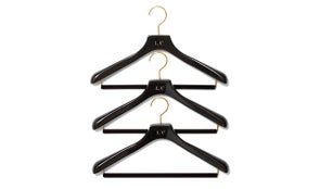 ハンガーは洋服の形崩れを防ぐとともに、着用によりついた洋服のシワを伸ばし、汗などの水分を蒸発させ洋服をリフレッシュさせる洋服にとってとても重要な道具です。このハンガーはそうしたハンガーの機能性を十分に考慮して作られています。並んだ時に整然と見えるよう頭面をフラットにカット。ブラックのボディとゴールドカラーの金具が、洋服とクローゼット全体を美しく引き立ててくれます。