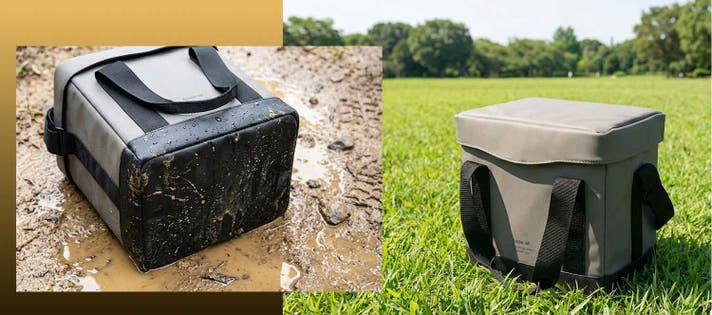 泥や濡れた芝生の上でも、強化ターポリンの底面が地熱をカットし汚れもガード。サッと洗えるのでいつでも清潔。