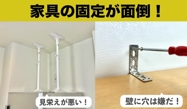 地震が多い近年。家具の固定が大事だと分かっているけど準備できていない方が多いと思います。
