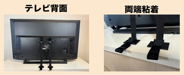背面に設置する為目立ちません。テレビの背面にネジ穴がない場合やテレビ台でビス固定ができない場合でも、粘着式なので固定可能です。
