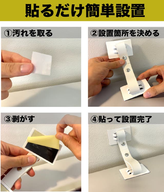 - 壁に穴を空けずに設置可能!貼るだけ簡単設置。