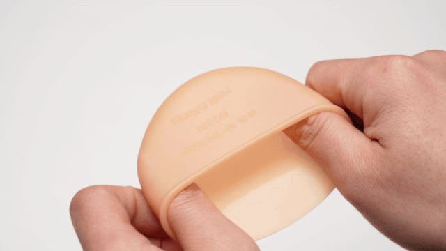 A : 本製品はシリコン材質で伸びやすいですが、鋭い物や爪で強く引っ張ると破れる恐れがありますのでご注意ください。