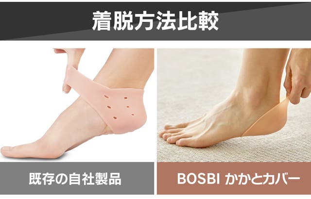 BOSBIかかとカバーはいつでもどこでも簡単に着脱ができるように考案されたカバーです。