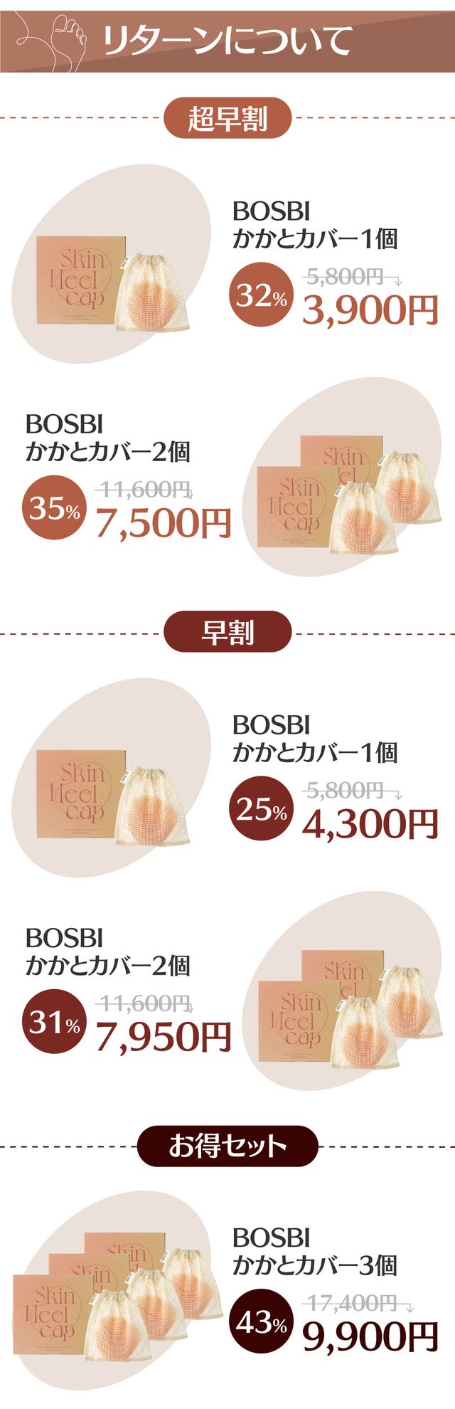 この商品を輸入しようと思った理由:かかとのケアに悩んでいる母にBOSBIのかかとカバーをプレゼントしました。大変満足したようなので、私も使ってみると特にケアする必要もなく、取り付けも簡単!とても満足しましたので