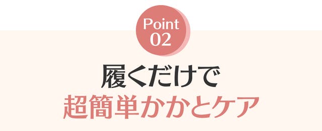 どんなファッションにも馴染みやすいカラーでいつでもおしゃれを楽しみながら、知らない間にかかとケアができます。