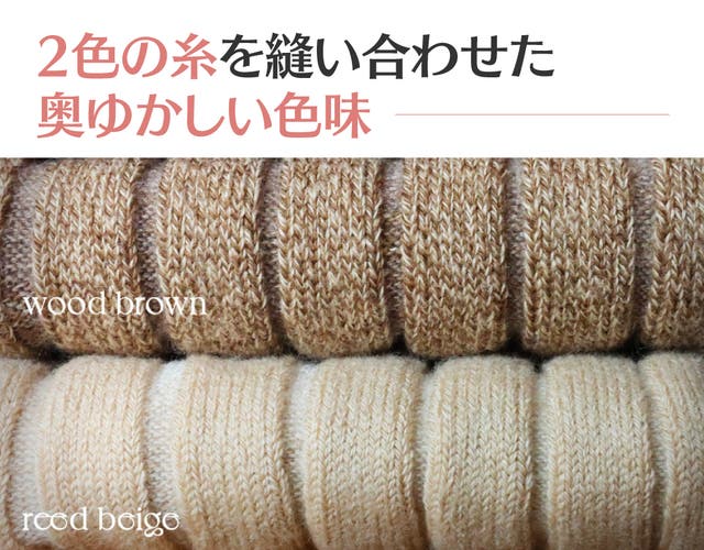 靴下の色や質感は糸から違いがで出ます。一つの色を表現するとしても奥ゆかしい色味を表現できるように糸から直接製作しています。連射工程を通じて2色の糸を自然に混合して作り上げました。
