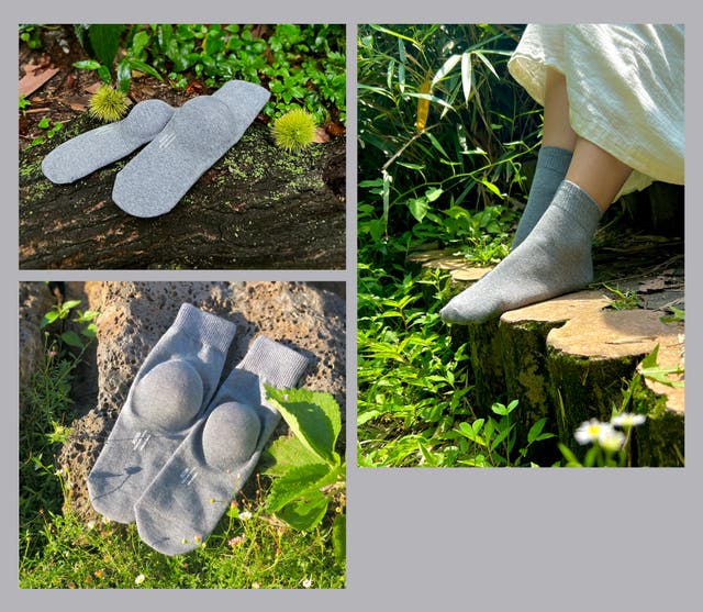 柔らかいシリコン素材で靴下のかかとの内側部分が、ぷにぷに柔らかい感触を実際に確認してください。