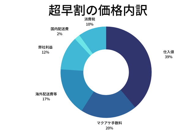 超早割の価格は下記の割合で組まれています。超早割から早割の価格増加分は広告費としてあてがわさせていただきます。