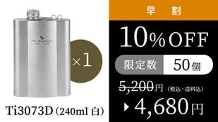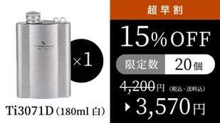 - 周りも注目する"深みある渋さが男心をくすぐる"チタンで出来たヒップフラスコを片手にソロキャンへ