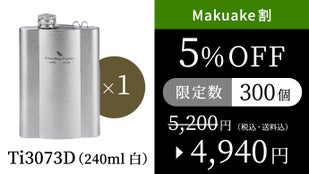 【Makuake割5%OFF】チタン製ヒップフラスコ 白240ml